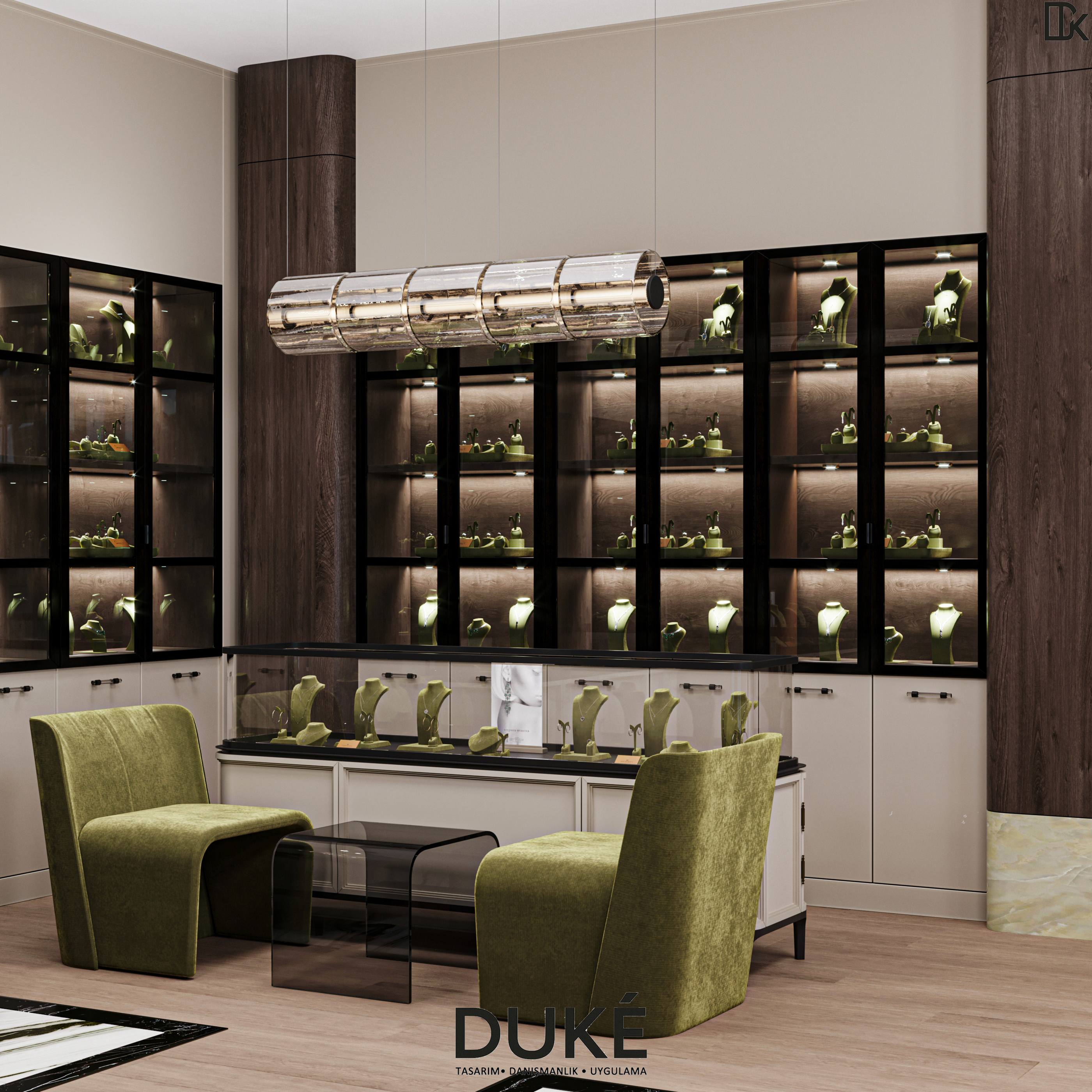 DUKE Mimarlık olarak konut, villa, ofis, eczane, klinik, kuyumcu, veteriner gibi alanların dinamiklerine hakim olan, anahtar teslim uygulama, mobilya, danışmanlık, proje çizim ve tasarım yapan iç mimarlık firmasıyız. Hızlı, fonksiyonel, ihtiyaca uygun tasarım ve uygulama için geniş çaplı ekibimiz ile hizmet sunmaktayız.