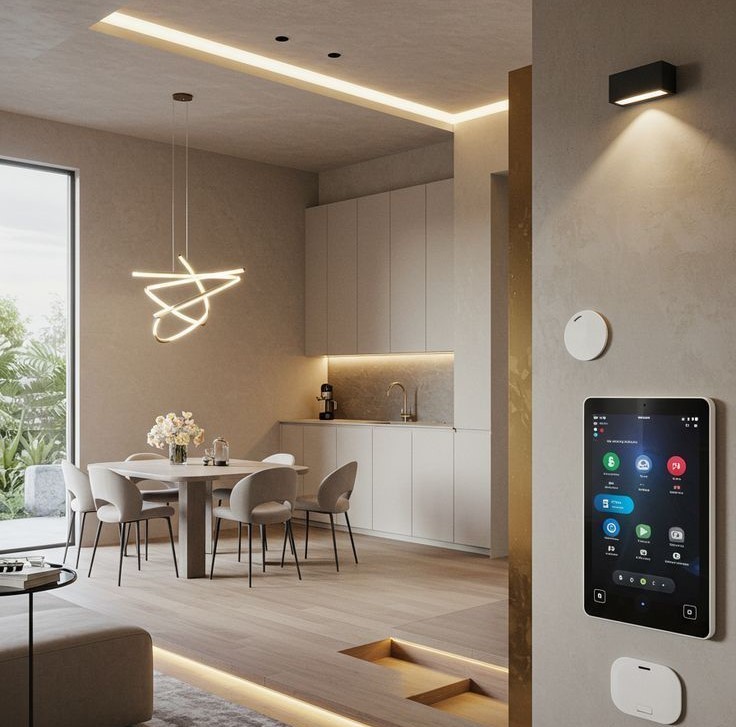 Akıllı ev sistemleri, aydınlatma, ısıtma-soğutma, güvenlik, perde ve multimedya gibi birçok fonksiyonun tek bir merkezden kontrol edilmesini sağlar. Ancak bu sistemlerin başarılı şekilde çalışabilmesi, iç mimari proje ile baştan itibaren uyumlu şekilde planlanmasına bağlıdır. Sonradan eklenen sistemler çoğu zaman mekansal bütünlüğü bozar ve teknik sorunlara yol açar.